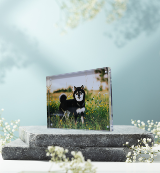The quick, easy and slightly different way to display your dog's cheekiest moments. There’s no need to worry about any hanging or framing, acrylic photo blocks come ready to pop on the shelf, desk, mantelpiece or anywhere else around the house.