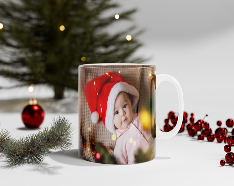 Follow the simple steps in the Editor to create your unique Christmas mug in no time. The Christmas photo mug can be ordered from a minimum of one mug, but is also available in large quantities. The mug is dishwasher proof, so that you can enjoy using your personalised Christmas photo mug for years to come.